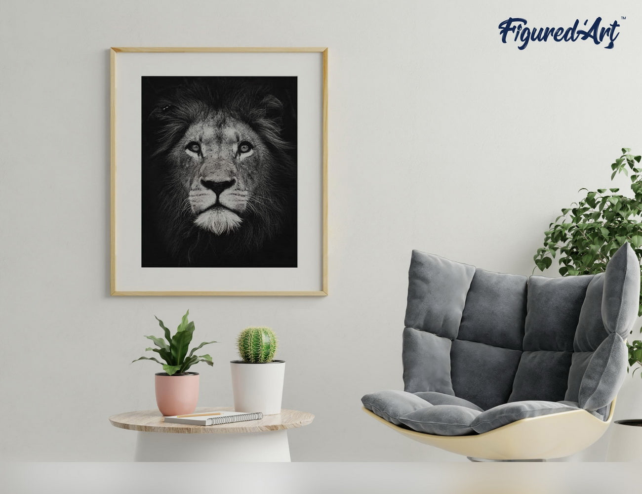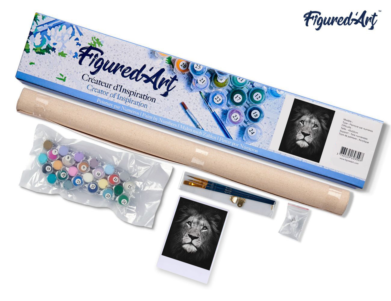 Malen nach Zahlen 40x50cm ohne Keilrahmen Figured’Art Löwenkopf in schwarzweiss
