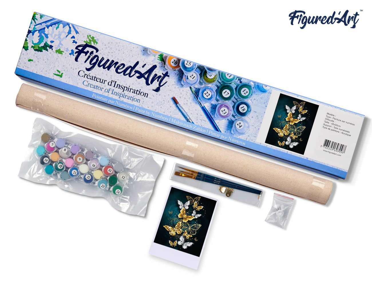 Malen nach Zahlen 40x50cm ohne Keilrahmen Figured’Art Magische Schmetterlinge 3