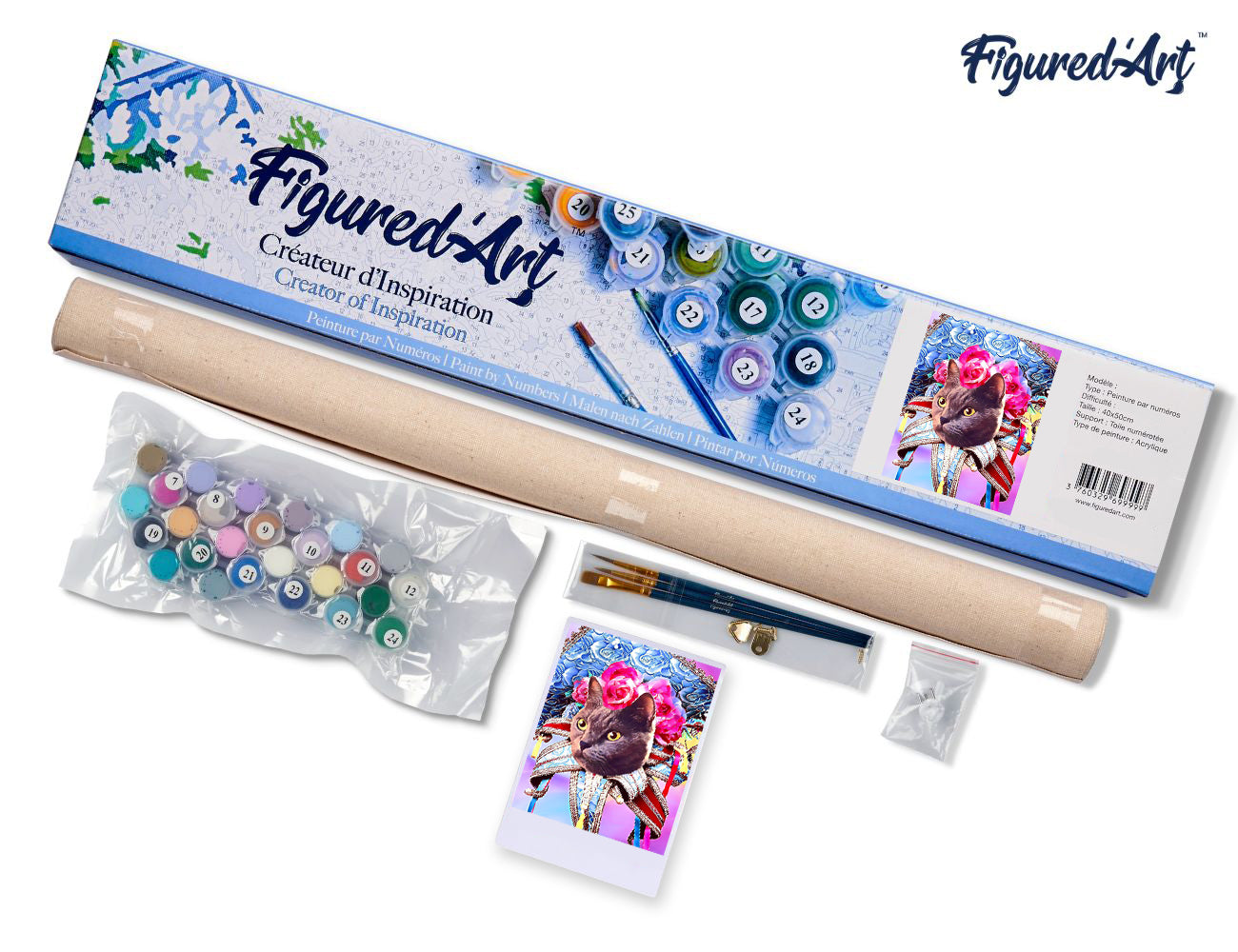 Malen nach Zahlen 40x50cm ohne Keilrahmen Figured’Art Mardigras Katze