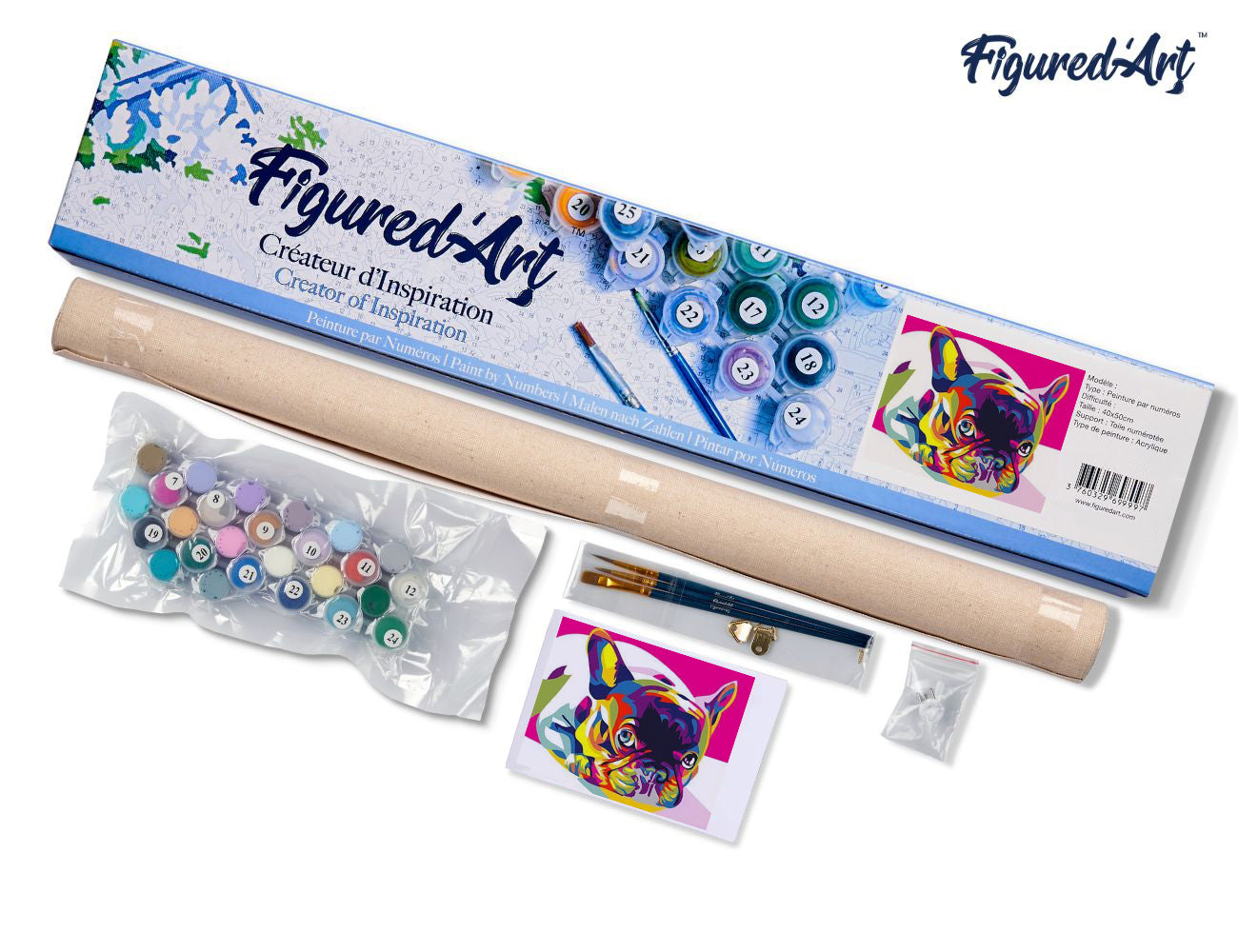 Malen nach Zahlen 40x50cm ohne Keilrahmen Figured’Art Mops Pop Art