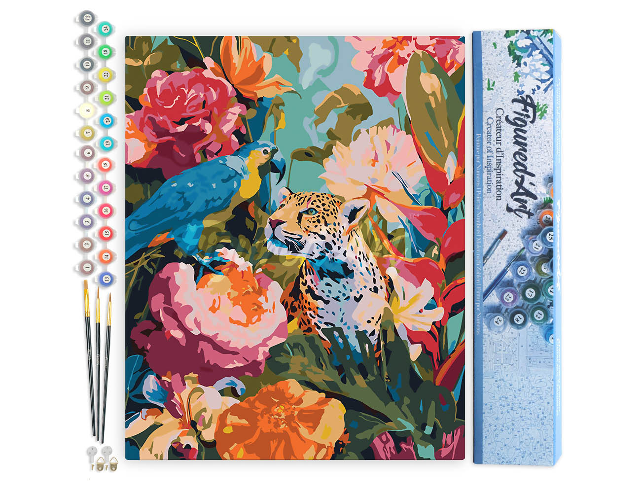 Malen nach Zahlen 40x50cm ohne Keilrahmen Figured’Art Papagei und Leopard