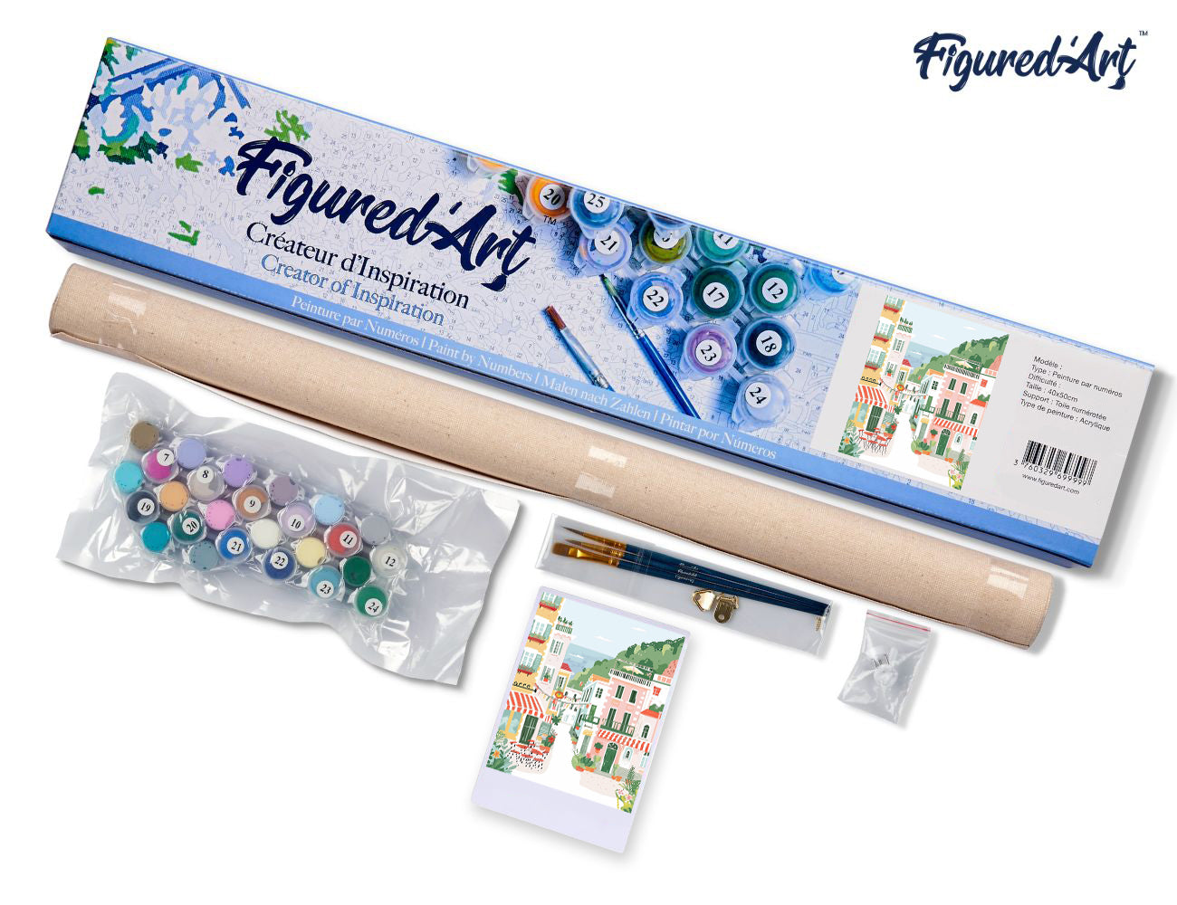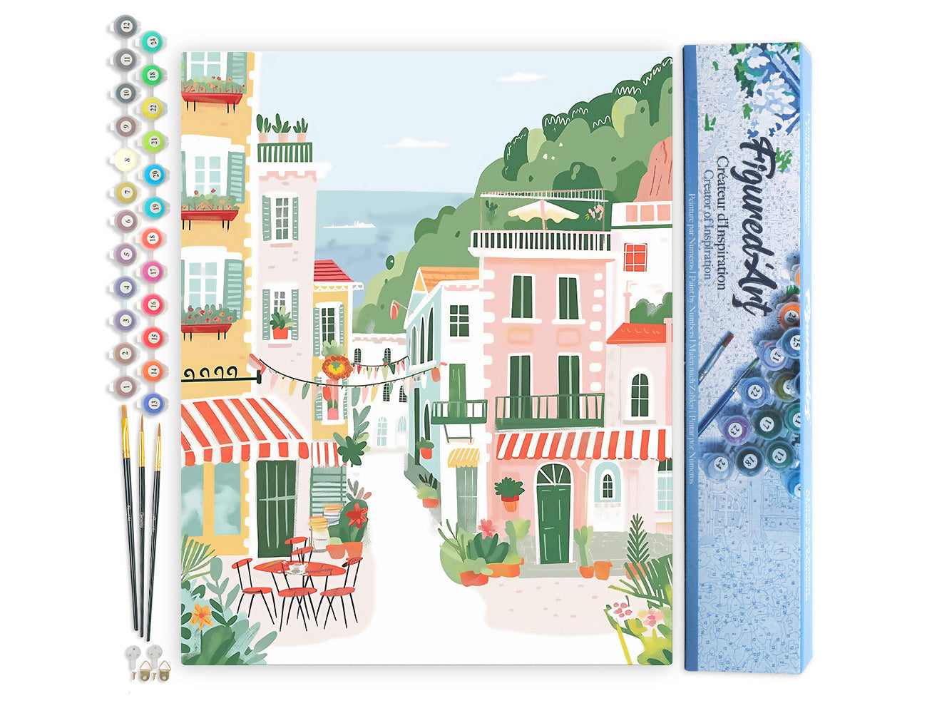 Malen nach Zahlen 40x50cm ohne Keilrahmen Figured’Art Pastellfarbene Küstenstadt