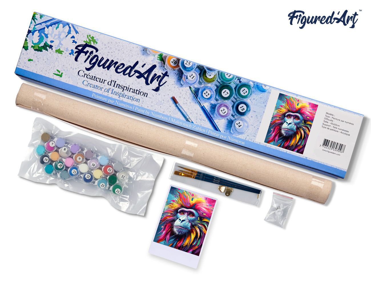 Malen nach Zahlen 40x50cm ohne Keilrahmen Figured’Art Pavian Farbenfroh Abstrakt