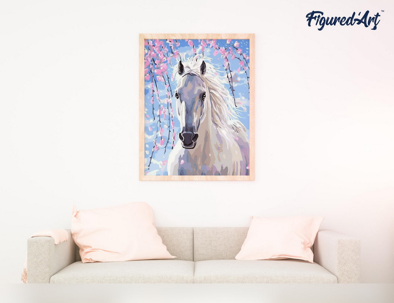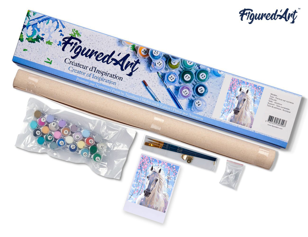 Malen nach Zahlen 40x50cm ohne Keilrahmen Figured’Art Pferd und weisse Blumen