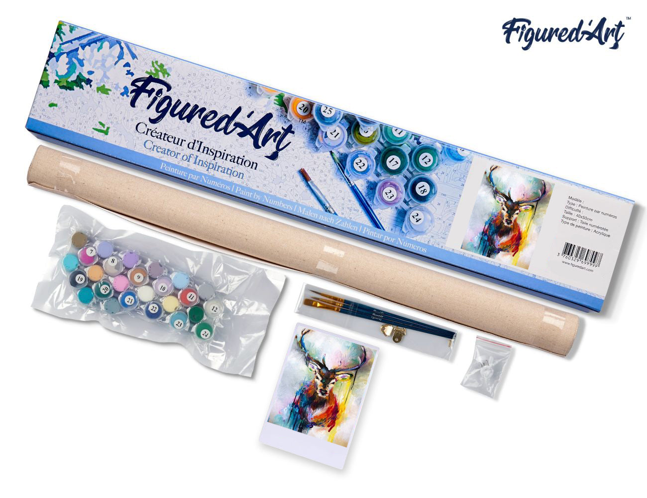 Malen nach Zahlen 40x50cm ohne Keilrahmen Figured’Art Portrait bunter Hirsch