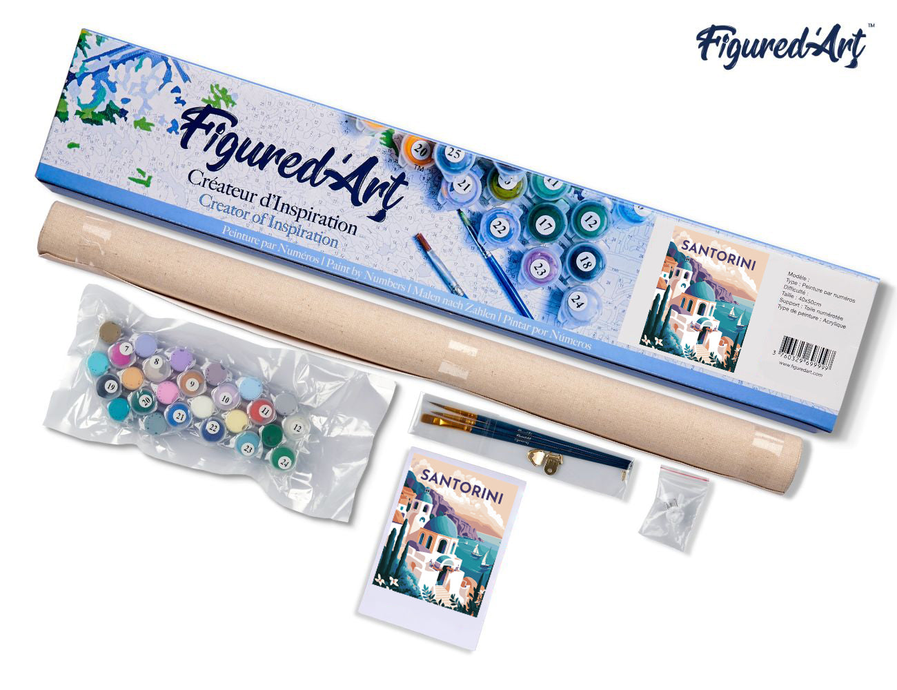 Malen nach Zahlen 40x50cm ohne Keilrahmen Figured’Art Reiseplakat Santorini