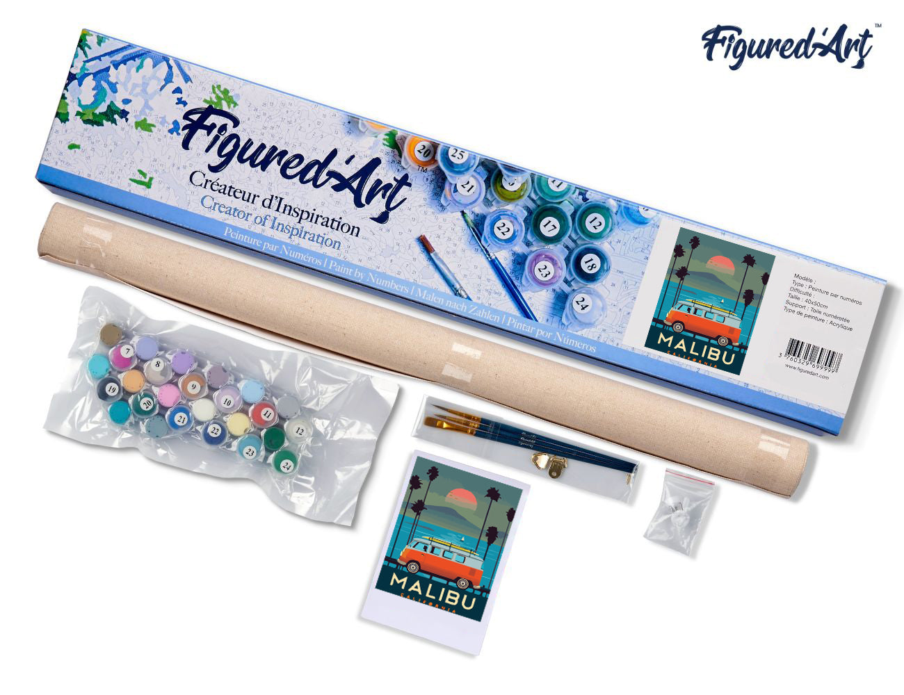 Malen nach Zahlen 40x50cm ohne Keilrahmen Figured’Art Reiseposter Malibu Kalifornien