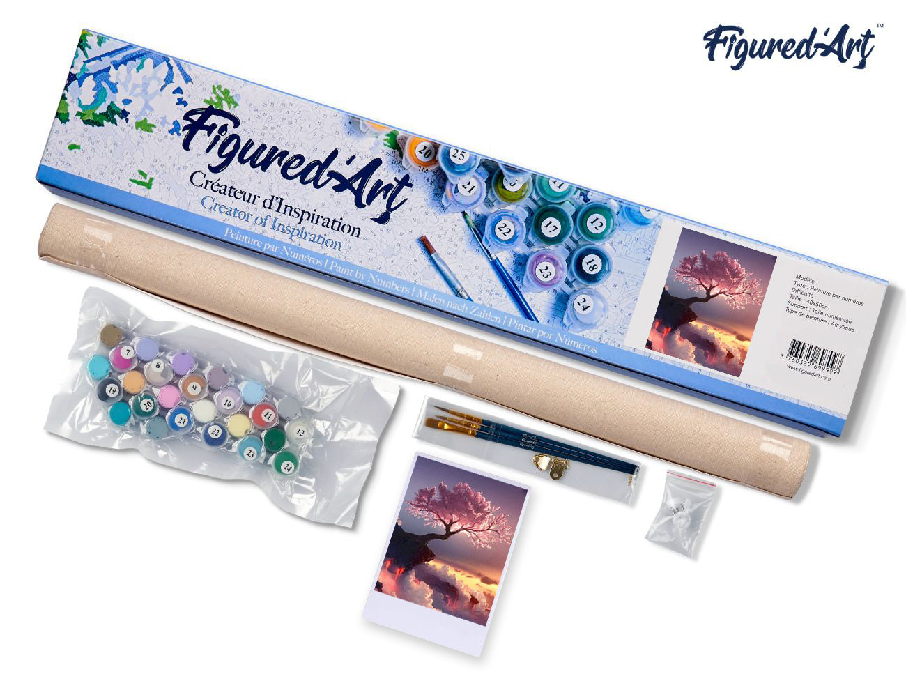Malen nach Zahlen 40x50cm ohne Keilrahmen Figured’Art Rosaroter Baum und Wolken