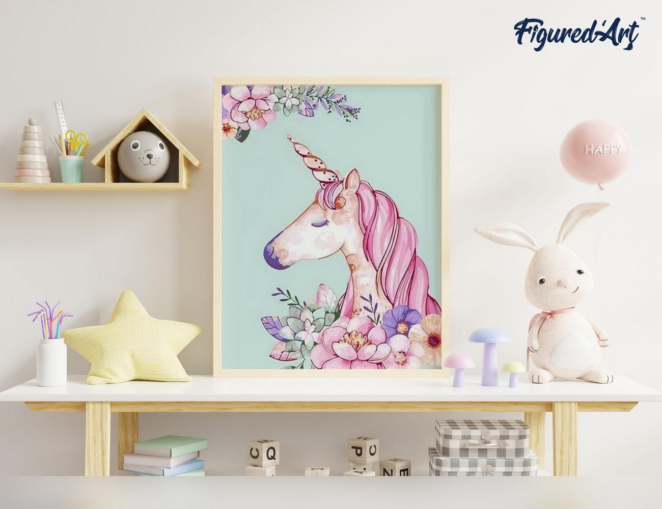 Malen nach Zahlen 40x50cm ohne Keilrahmen Figured’Art Rosarotes Einhorn
