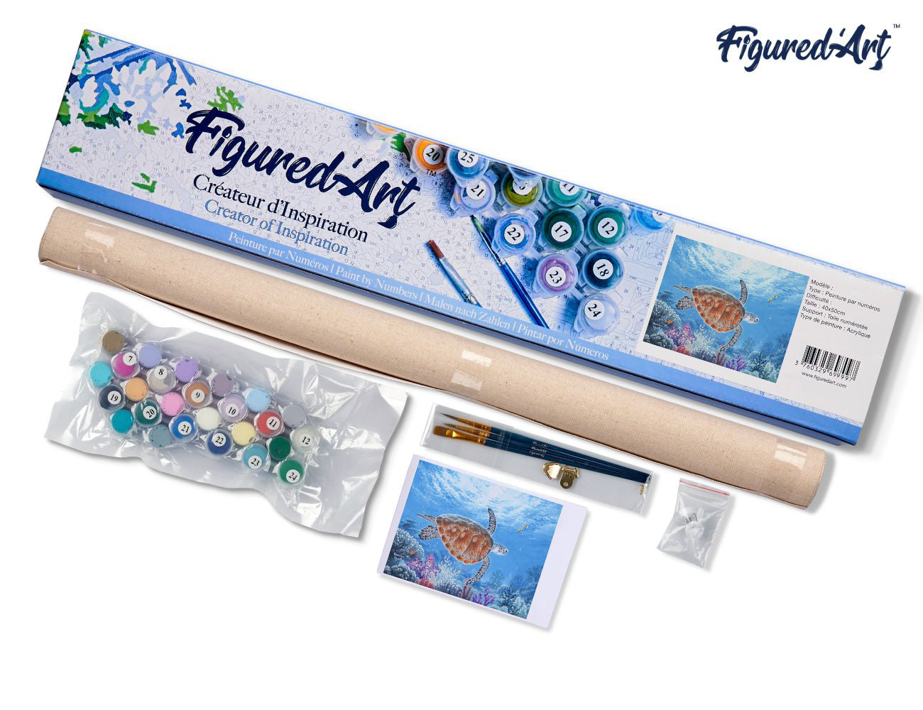Malen nach Zahlen 40x50cm ohne Keilrahmen Figured’Art Schildkröte auf einer Ballade