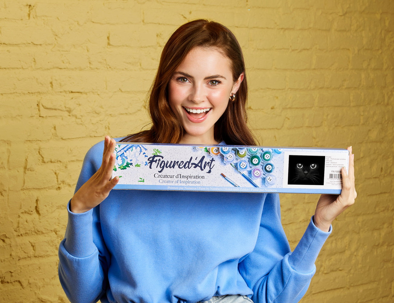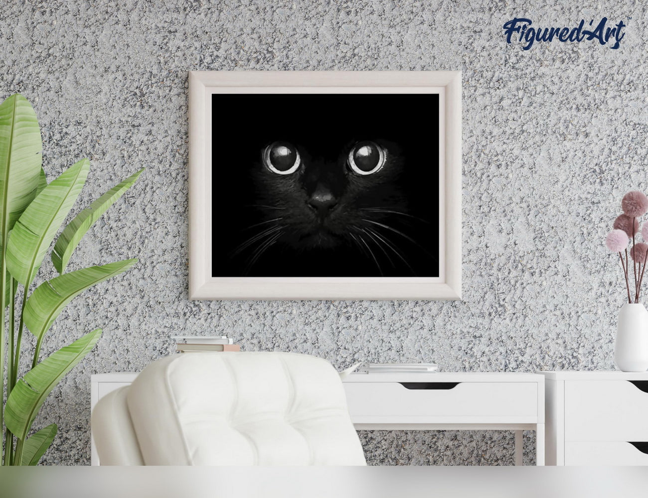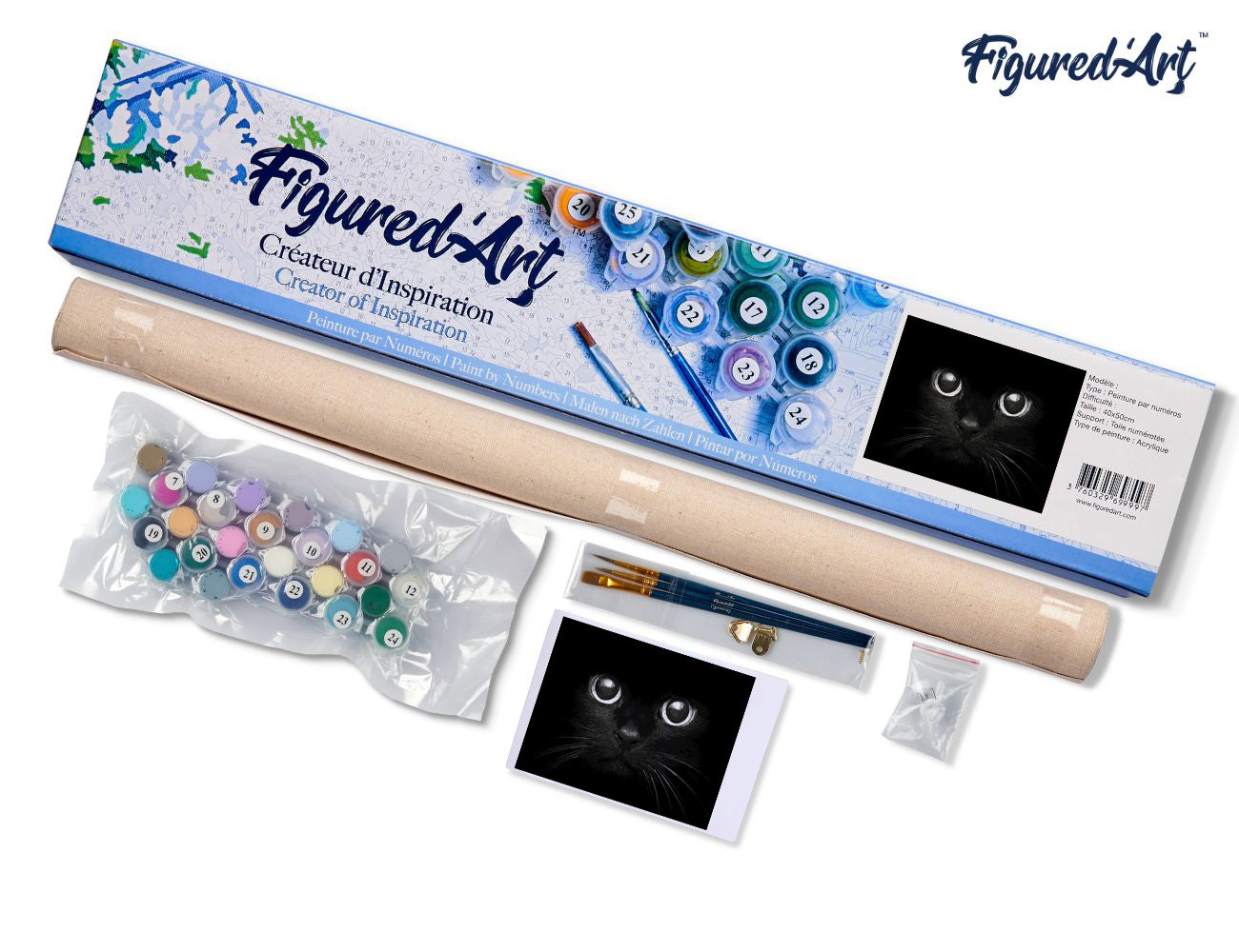 Malen nach Zahlen 40x50cm ohne Keilrahmen Figured’Art Schwarzer Katzenkopf