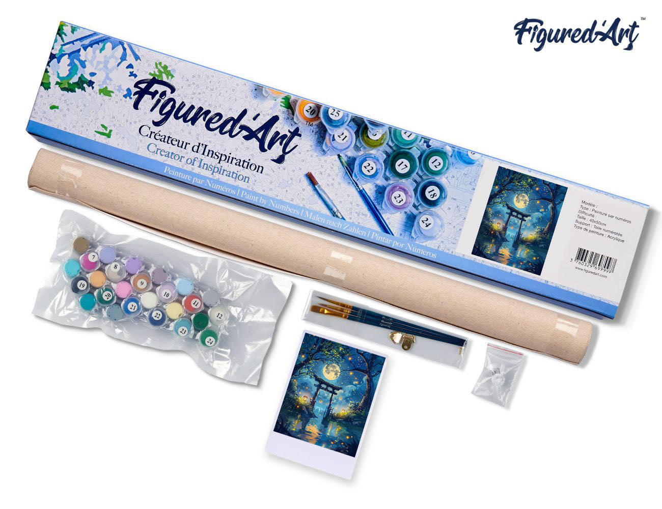 Malen nach Zahlen 40x50cm ohne Keilrahmen Figured’Art Torii im Mondlicht und Glühwürmchen