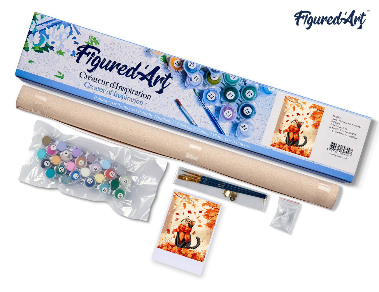 Malen nach Zahlen 40x50cm ohne Keilrahmen Figured’Art Verspielte Katze im Herbst