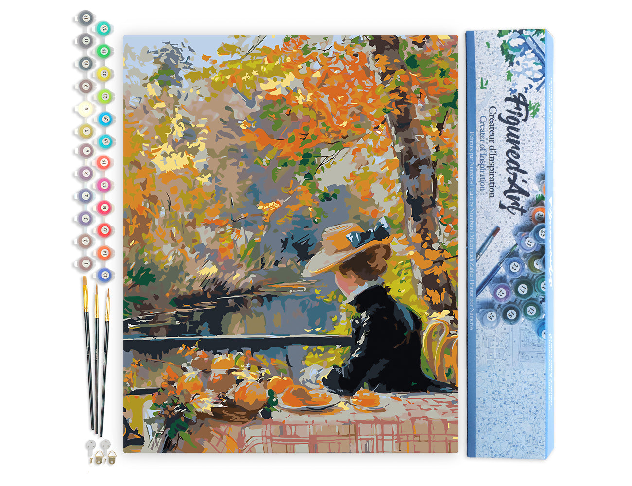 Malen nach Zahlen 40x50cm ohne Keilrahmen Figured’Art Von Renoir inspirierte Frau im Herbst