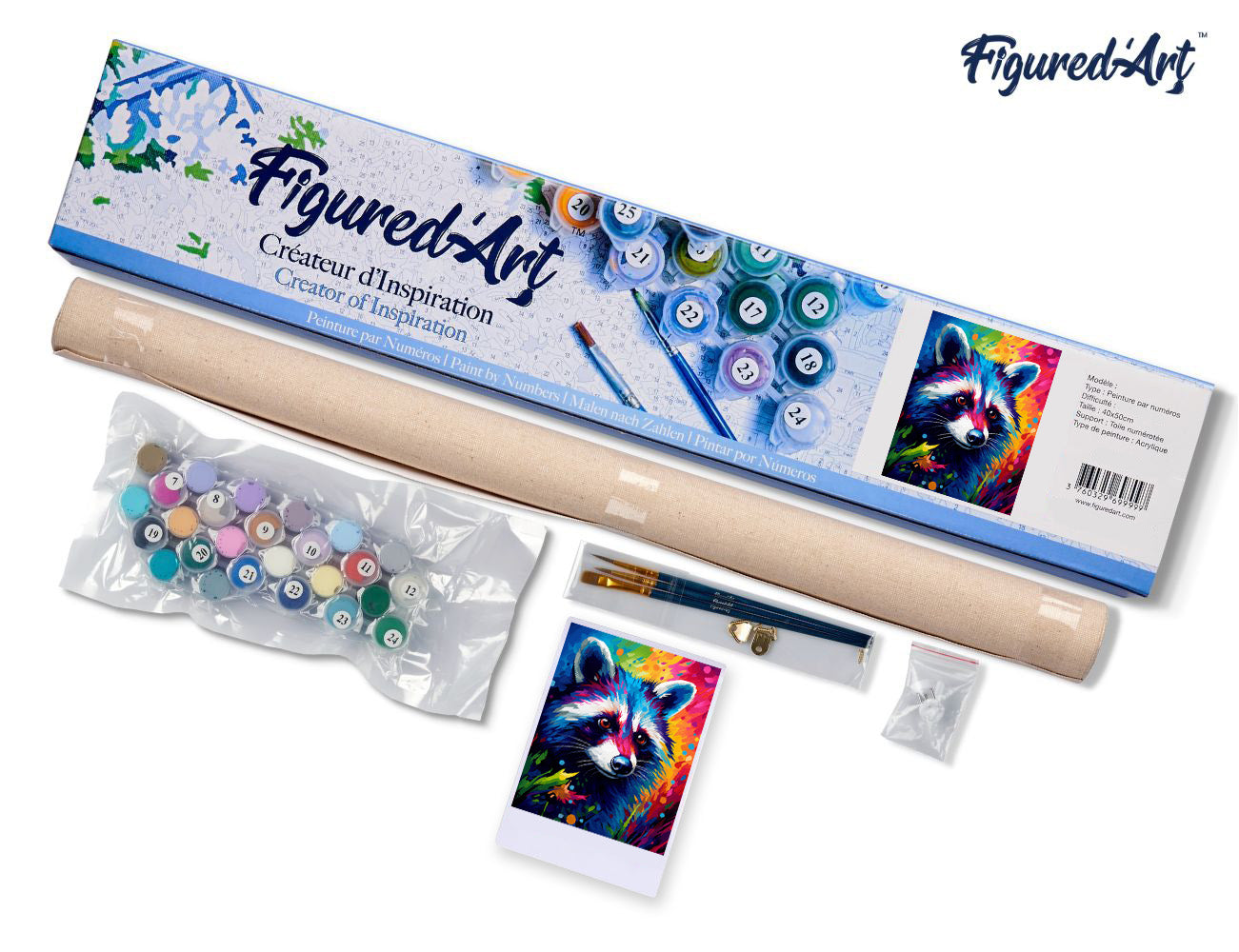 Malen nach Zahlen 40x50cm ohne Keilrahmen Figured’Art Waschbär Farbenfroh Abstrakt