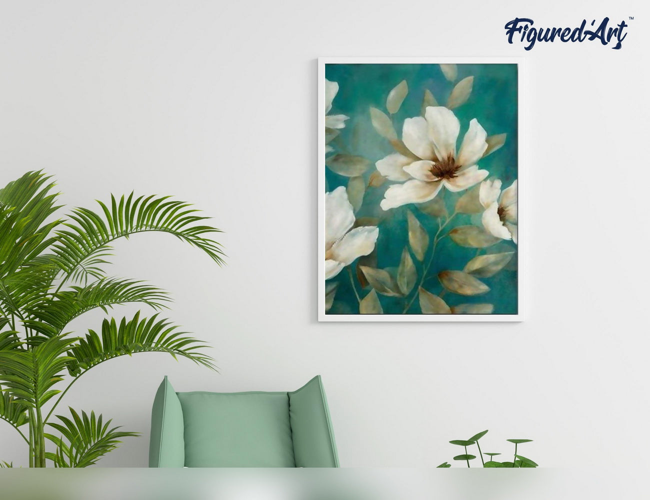 Malen nach Zahlen 40x50cm ohne Keilrahmen Figured’Art Weisse Blüten abstrakt