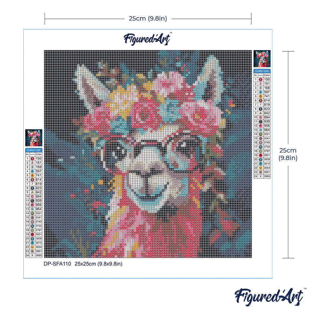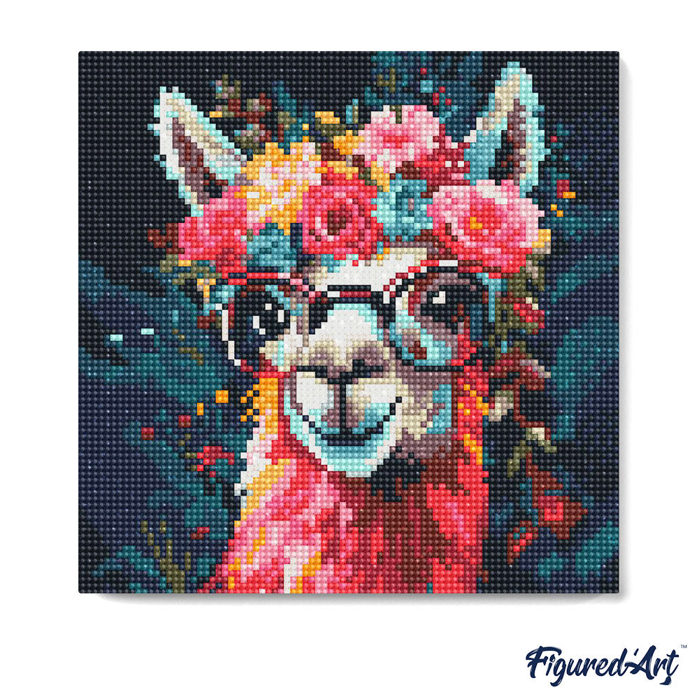 Bestellen Sie jetzt das Figured'Art Mini Diamond Painting 25 x 25 cm – Fantasie Lama mit Blumen und genießen Sie entspannte Kreativität, die begeistert.