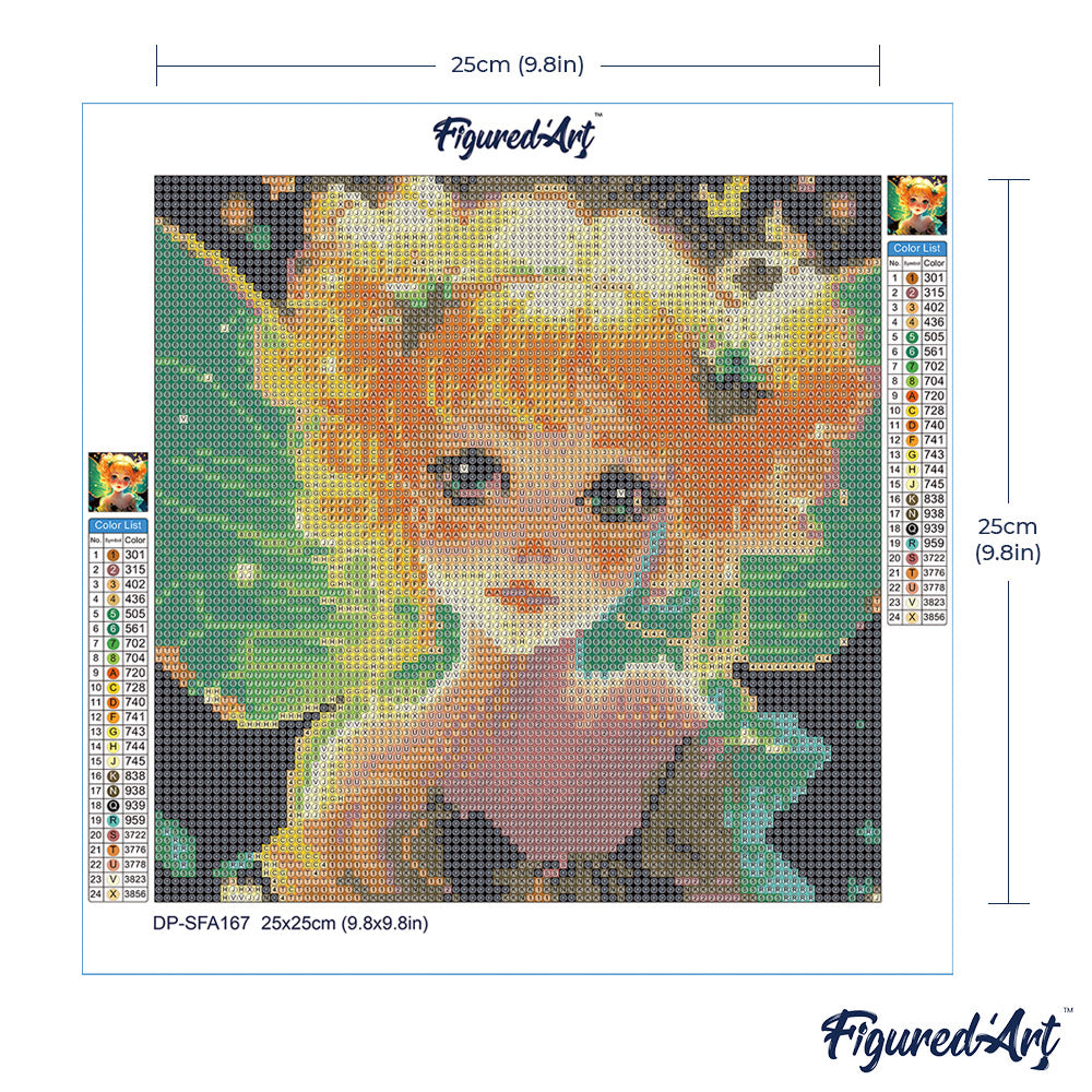Entdecken Sie mit dem Mini Diamond Painting Set 25 x 25 cm ohne Keilrahmen Hübsche Kleine Fee von Figured'Art eine kompakte, entspannende Diamant-Malerei-Erfahrung. Die fertige Illustration wird auf einer gerollten, selbstklebenden Leinwand in der Größe 25 x 25 cm umgesetzt – ganz ohne Keilrahmen.