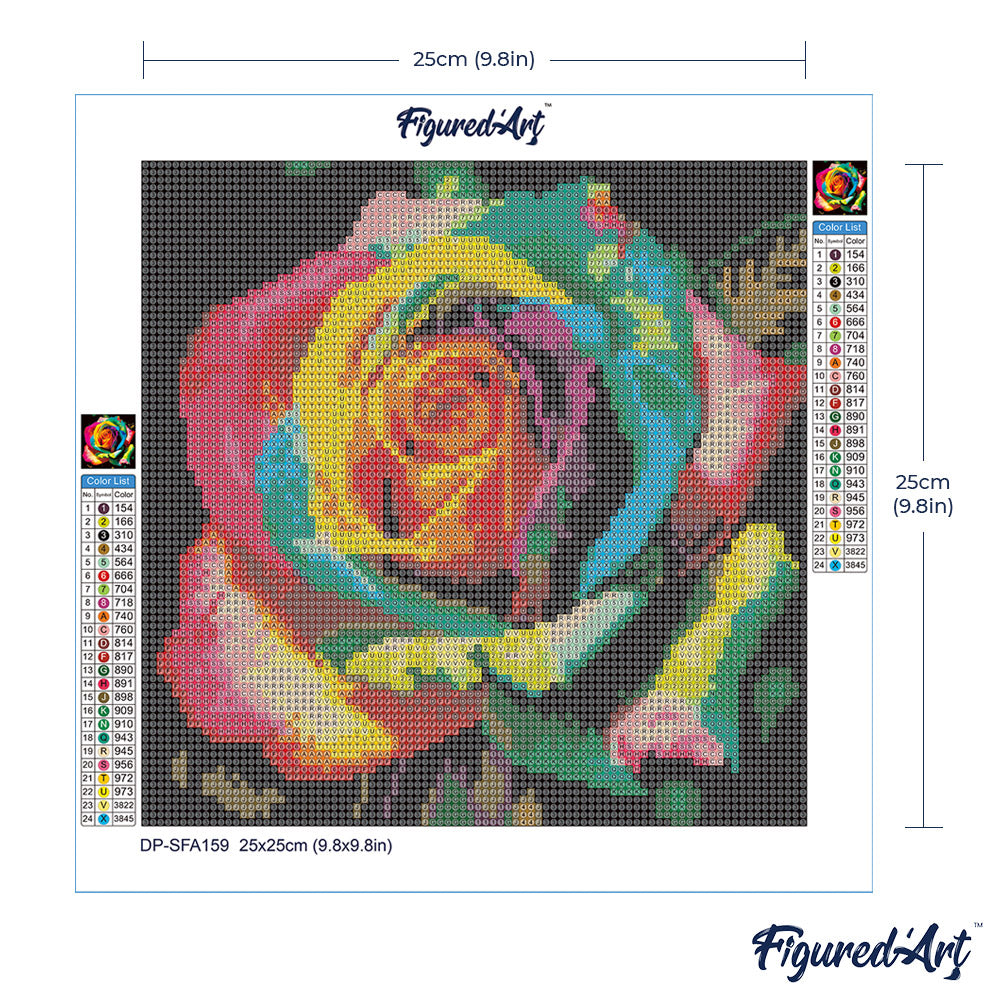 - 1 hochwertige, nummerierte selbstklebende Leinwand (25x25 cm) mit dem Motiv Mehrfarbige Rose