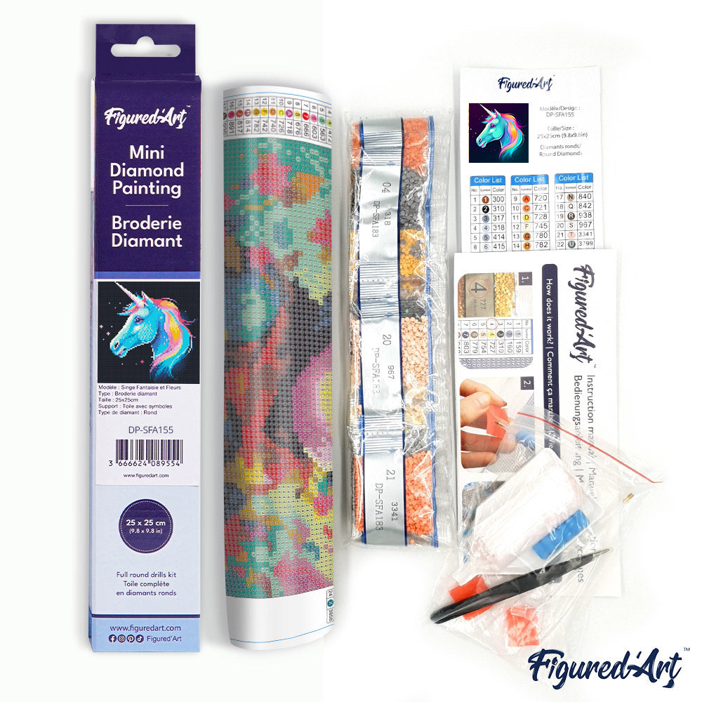 Entdecken Sie das kompakte Kunstwerk von Figured'Art: Mini Diamond Painting 25 x 25 cm ohne Keilrahmen Neon-Einhorn. Dieses Set macht kreatives Malen mit Diamanten so einfach wie entspannend – perfekt für Anfänger, Fortgeschrittene und alle, die ein farbenfrohes, dekoratives Motiv genießen möchten.