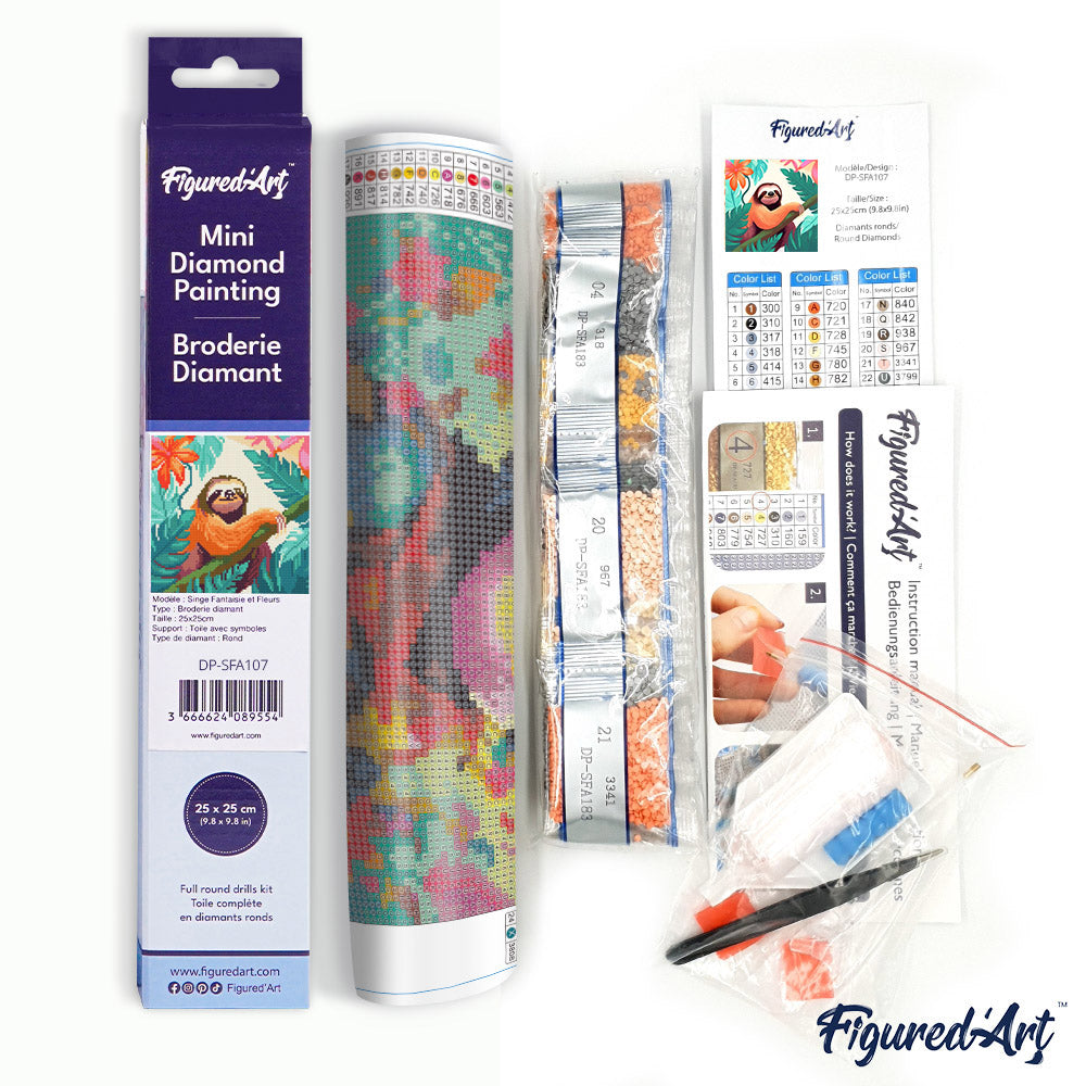Dieses Set ist ideal als dekoratives Kunstprojekt, Geschenk oder Einsteiger-Kit, das Freude bereitet und gleichzeitig hochwertige Ergebnisse liefert. Profitieren Sie von der klaren nummerierten Anleitung, der selbstklebenden Leinwand und dem Plus an Diamanten für ein stressfreies Bastelerlebnis. Bestellen Sie jetzt das Mini Diamond Painting Tropisches Faultier von Figured'Art – der perfekte Einstieg in die bunte Welt des Diamond Paintings als Diamond Painting Mini.
