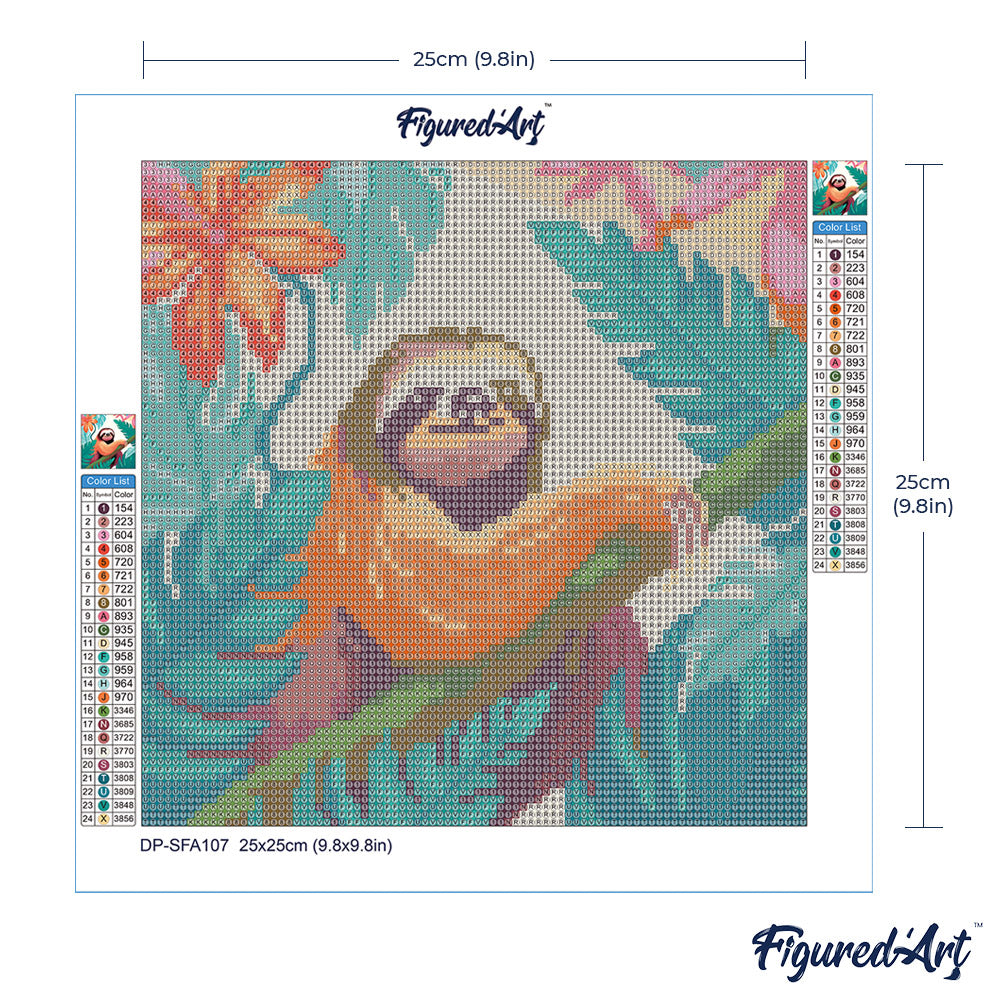 Entdecken Sie mit Figured'Art das kompakte Diamond Painting Erlebnis: Mini Diamond Painting Tropisches Faultier, 25 x 25 cm, ohne Keilrahmen. Diese kleine, stylische Leinwand ist bereits nummeriert und selbstklebend, sodass das Anbringen der Diamanten zum entspannten DIY-Abenteuer wird.