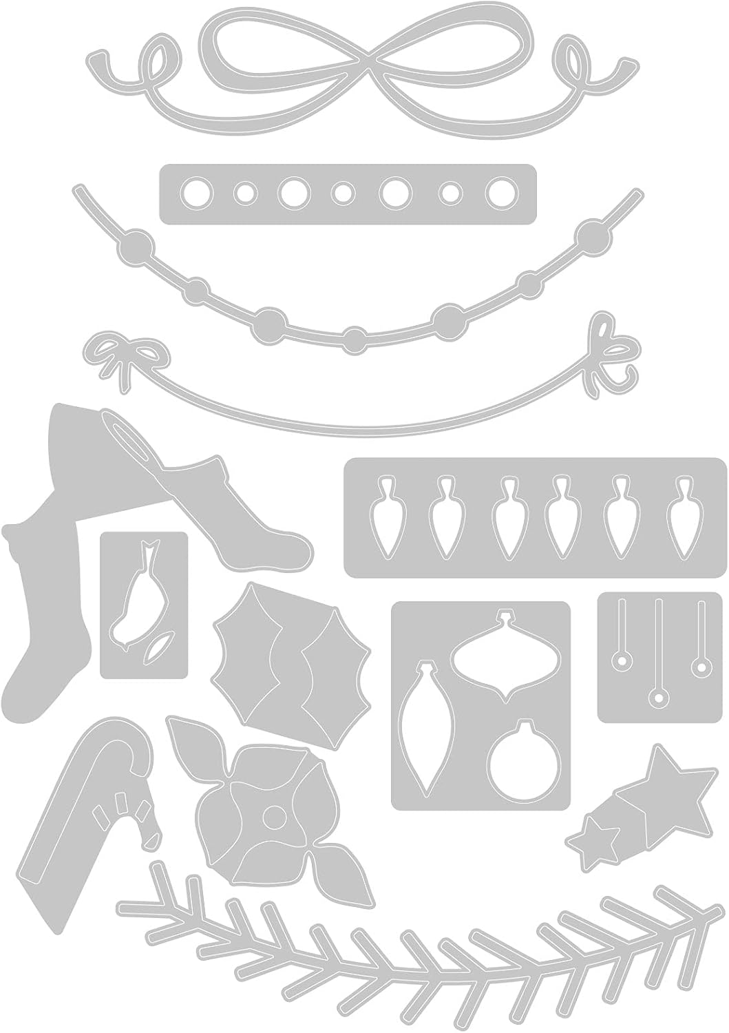 Thinlits Stanzset 14 Stück – Weihnachtsbordüren ist ein 14-teiliges Stanzset von Sizzix, das speziell für feine weihnachtliche Bordüren entwickelt wurde. Die Motive liefern filigrane Randgestaltung für Karten, Einladungen und Scrapbooking-Seiten. Die Stanzformen ermöglichen präzise Schnitte mit gleichmäßigen Kanten und lassen sich vielseitig kombinieren, um individuelle Designs zu erstellen.
